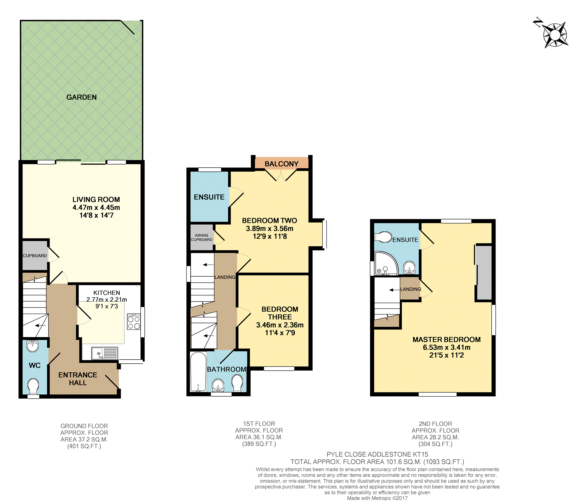 A beautifully presented modern design end of terrace three double bedroom townhouse 0.1 miles from Addlestone Mainline Station.