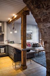 A stylish top-floor apartment in a converted Georgian warehouse, featuring exposed brickwork, original beams, and hardwood ...